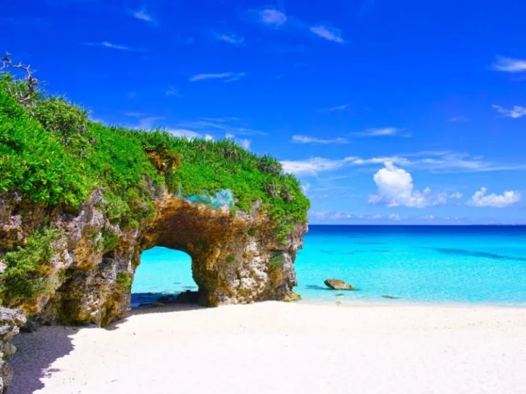On Miyako Island lies Sunayama Beach: an Okinawa beach with a breathtaking arched rock formation. From the parking area, you’ll have to take a short hike in order to get here. But it is all worth it when you see this natural masterpiece.
