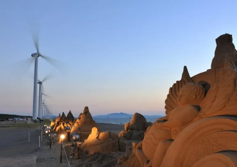 You may have built a sandcastle or two when you were younger, but sandcastle-building is taken to a whole new level at Kamayahama Beach. This beach in Akita Prefecture is where the Mitane Sand Craft Festival is held every July. Professional sand sculptors from different parts of the country come here to work on massive sand sculptures.