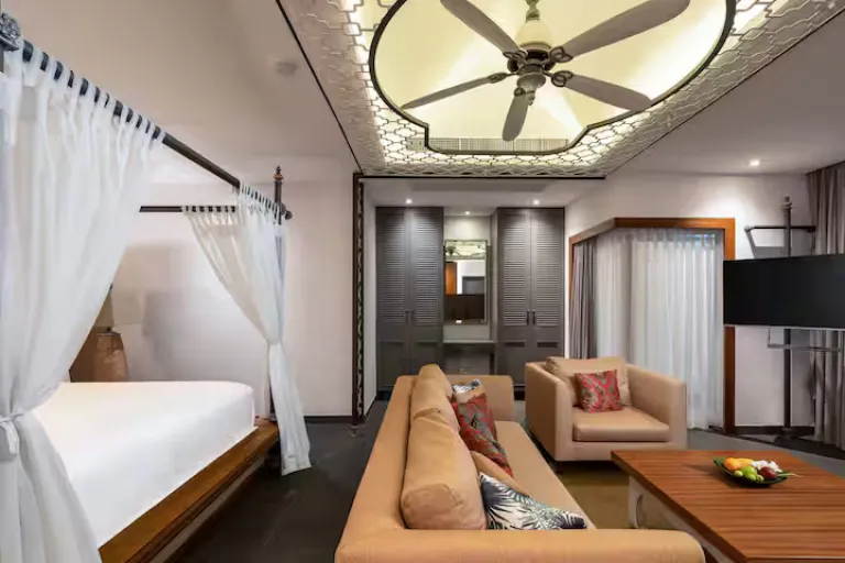 Unwind in this stylish and cheap 1-bedroom seaview suite couple Airbnb in Phuket, set along the serene shores of Tri Trang Beach. Featuring a private plunge pool, airy interiors, and modern comforts, it blends relaxation with luxury. Enjoy beach access, a beachfront restaurant, and peaceful seclusion, just minutes from the lively buzz of Patong.