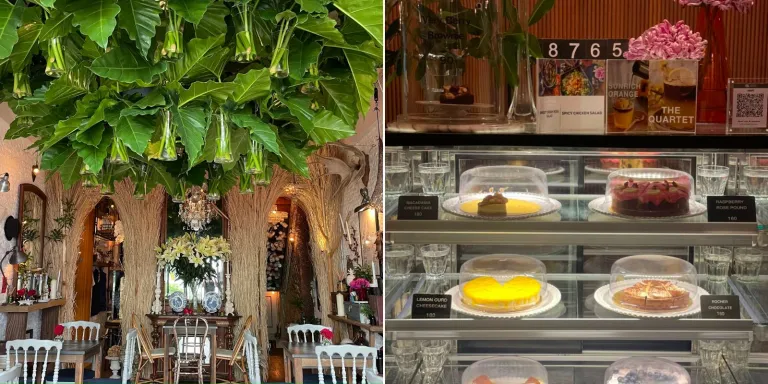 Similarly, if you’ve recently visited Pak Khlong Talat, Bangkok’s flower market, there’s a cafe you must check out. The Floral Café at Napasorn is a hidden gem located on the second floor of a flower shop, and the interior is a magical sight to behold. The entire space is marked with flower arrangements that change depending on the season, and if you look up, you’ll be wowed by the crystals hanging from the ceiling. When it comes to the menu, there is quite a selection of cakes, floral teas, and homemade ice cream to beat the heat. Yummy!