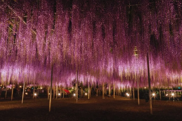 Ashikaga Flower Park is home to a 160-year-old Great Wisteria Tree that only blooms once a year during spring. During this time, who are lucky enough to witness the dangling purple flowers will find themselves transported to the fictitious, wisteria-covered mountain of Mount Fujikasane from Demon Slayer.
