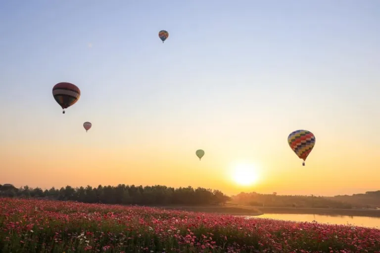 Hitch a hot air balloon ride to experience an uninhibited 360-degree panoramic view of the landscape flooded with flower fields. This is the very picture of serenity. At the most incredible vantage point to catch the sunset, you’d put even your greatest troubles on hold.
