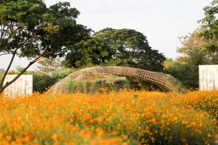 During the peak season, the park is ablaze with vibrant orangey-pink Cosmos. | Image credit: Singha Park Chiang Rai Official Facebook Page
