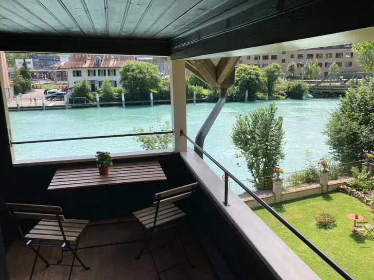 Apartment Belle Rive is a cosy, newly renovated stay set in a quiet yet central location. Enjoy stunning views of the Aare River, mountains, and passing boats from a spacious balcony. With public transport nearby and the town center just a short walk away, it’s a perfect luxury Airbnb in Interlaken Switzerland for a peaceful, scenic Interlaken escape.
