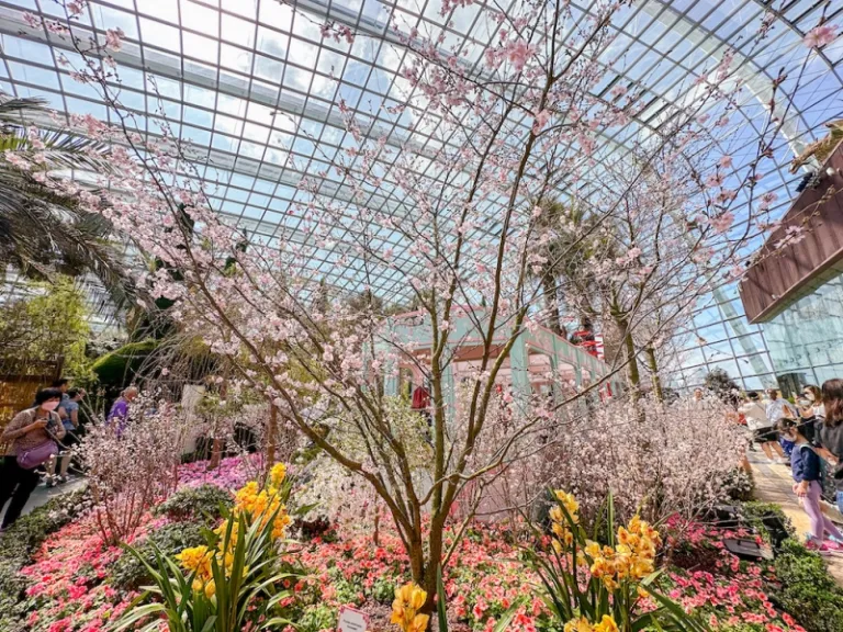 With its year-round warm and humid weather, Singapore is perhaps the most unexpected destination for cherry blossoms in Asia. Yet those in the know would make a beeline for the iconic Gardens by the Bay for the annual sakura display, which usually begins in mid-March. During this time, the Flower Dome showcases numerous varieties of cherry blossoms in whites, pale pinks, and deep rosy hues. Topping it all off are themed decorations based on Japanese traditional and pop culture — making one feel like they’ve been transported to the Land of the Rising Sun!