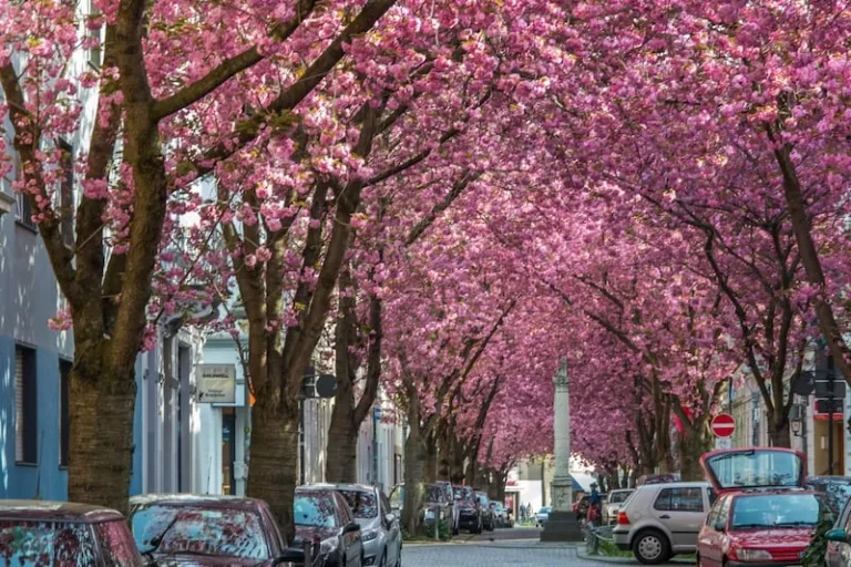 Bonn is primarily famous for being the birthplace of Beethoven, as well as the former capital of West Germany. Nowadays, travellers flock there in spring (typically April) to fulfil their dreams of walking under majestic canopies of sakura. Picture charming streets lined with pastel houses and cherry trees that form natural flower tunnels. Definitely, a scene that looks straight out of a fairy tale!