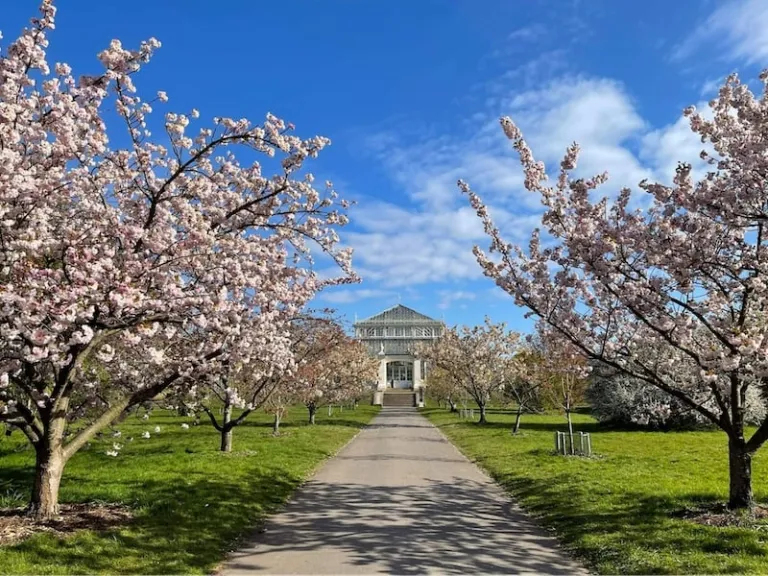 Say hello to the land of royalty, big red buses… and some of the most stunning gardens you’ll come across! Hence, it’s no surprise that London is also an ideal city to visit for cherry blossoms locations. To start off, we have Kew Gardens, aka the largest botanical garden in the world. Its very own Cherry Walk hosts a variety of sakura trees, complete with species labels that any horticulture enthusiast would appreciate.
