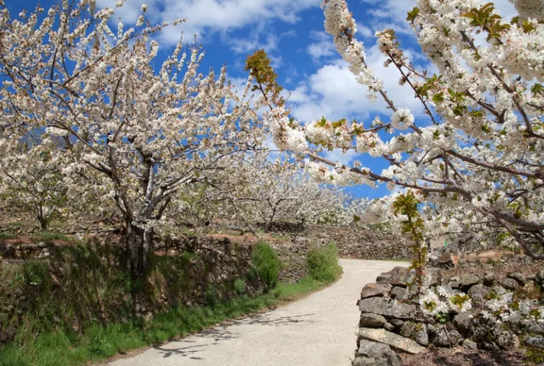 Tucked away in the Extremadura region that borders Portugal is Jerte Valley: a hidden gem in the Spanish countryside. It’s home to nearly two million cherry trees, most of which are grown the traditional way — that is, on the mountain slopes. From late March to mid-April, the hills and gorges are blanketed in white cherry blossoms that go as far as the eye can see.
