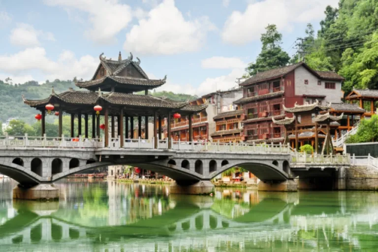 Named after an immortal, mythological bird, this next place radiates ethereal beauty and a rich cultural heritage. Fenghuang captivates with its winding alleys and well-preserved ancient architecture. Wander around Fenghuang Ancient Town’s charming wooden houses and cobblestone streets as each corner reveals a piece of history. Be sure to take a Tuo River cruise for an up-close look at the crystal-clear waters, allowing you to fully appreciate the town’s enchanting atmosphere from a different perspective.