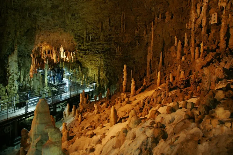 The Gyokusendo Cave at Okinawa World spans five kilometers with a spectacular display of rock formations for public viewing. The cave itself is estimated to be around 300,000 years old and contains more than one million stalactites – a Japanese record.