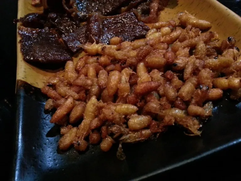 Believed to be good sources of proteins, honey bees are fried or sautéed and eaten as a snack. Think of peanuts with chopped onions and lime. Bees as well as their larvae are had in this form. The meat tastes almost like chicken. Remember to dust the wings off before you eat it, unless you are brave enough!