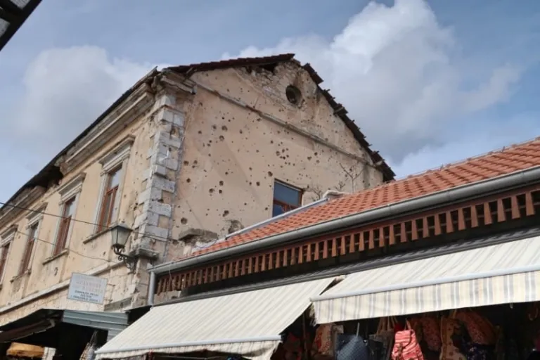 A building in Mostar that bears the scars of the war.