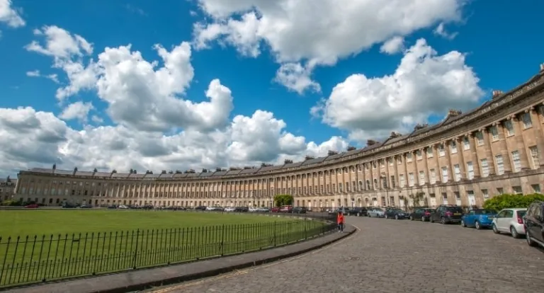 Who can forget the show’s opening scene, where the enigmatic Lady Whistledown narrates the beginning of the 1813 London debutante season? Here, we get a bird’s eye view of (what’s supposed to be) Grosvenor Square in the affluent Mayfair district. But in Bridgerton, the Royal Crescent in Bath was used to mimic the actual place. As the name suggests, it comprises a row of 30 lavish townhouses laid out in a sweeping crescent.