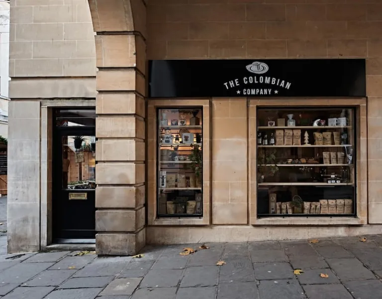 In the heart of Bath, there’s a charming speciality coffee shop called The Colombian Company. Its storefront makes a brief albeit memorable appearance in Bridgerton Season 1 as the Horse & Hop, aka that pub where Simon gets drunk — and eventually kicked out!