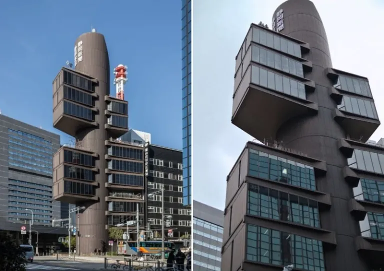 Located in the bustling city district of Ginza, the Shizuoka Press and Broadcasting Center is one of the many buildings that continue to redefine innovation in the field of architecture in Japan. It’s one of the many avant-garde buildings in Tokyo. Designed by Kenzo Tange, the centre was built in 1967 and inspired by the Metabolist movement’s principles of organic growth and adaptability. This iconic landmark stands 12 storeys tall. It features a central core that supports 13 individual office cubes, very much resembling tree branches and a trunk.