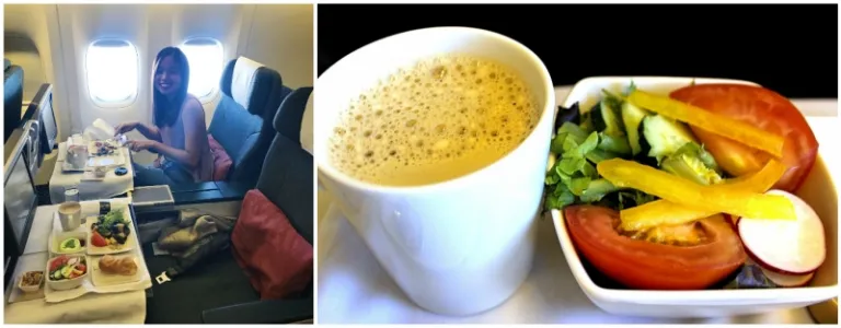 That unassuming drink on the left by the way, is Hong Kong style milk tea! I’m no caffeine addict, but milk tea?! It’s my one true love. I had to do a double take when I spotted it under the drinks list in the dining menu. Needless to say, I shamelessly asked for multiple servings of milk tea throughout the entire flight. There are no words to describe that blissful warmth that spreads all over your body as you gulp down a hot and frothy cup of Hong Kong milk tea at 30,000 feet above ground.