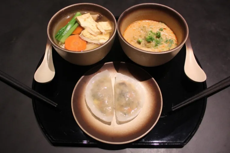 They have vegetarian options too, such as the Rice Noodles with Tofu and Enoki Mushrooms (top left), and Steamed Vegetable Dumplings (bottom). Don’t even get me started on how chewy and delectable those vegetable dumplings were! My friend and I feasted happily on FOUR servings of these dumplings – we would have asked for more had we not remembered that there would be food on our next flight. It was a wonderful gastronomic feast that left our stomachs lingering for more.