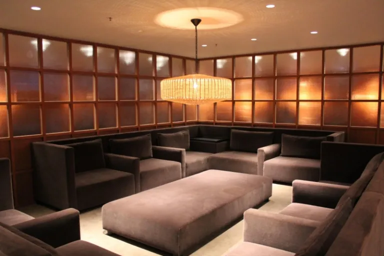 After ordering a cocktail or non-alcoholic drink of your choice, snuggle into any of these comfy and plush sofa seats for a good nap! Alternatively, you can even choose to sit by the floor-to-ceiling windows for an unparalleled view of the airplanes and the tarmac in the day. I simply love the warm lighting and soothing aesthetics of the lounge, a predominantly brown/grey colour palette contrasted with the occasional green potted plant – it just provided such a tranquil ambience that lulled me to sleep.