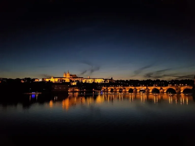 The River Vltava flows through the centre of Prague and played a fundamental role in the early days of the city. It separates the Old Town and New Town from the Prague Castle and Mala Strana district. At night, the bridges and buildings light up, providing a golden splendour to the riverside.
