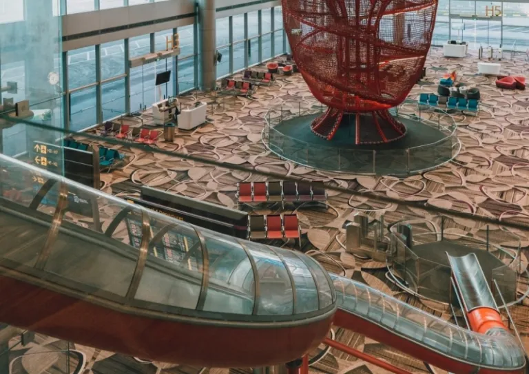 Did you know that you can literally slide down to your boarding gate at Changi Airport Terminal 4? Terminal 4 is home to an impressive tubular slide that snakes downwards straight into the transit area. It just opened early in 2024, making it one of the airport’s newest and coolest attractions. All you need to take the slide is your boarding pass! Just keep in mind that visitors must be between 1.1 to 2 metres tall to ride this slide.