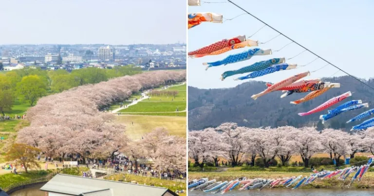 BTW, don’t forget to hop on a riverboat cruise across the Kitakami River where you get to pass under 300 colourful carp streamers! And if you have extra time on your plate, you can have a look at the tranquil Michinoku Folklore Village within walking distance from the park. Undoubtedly a Japan festival during cherry blossom season you can’t possibly miss!