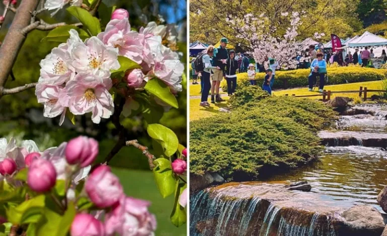Colloquially known as Australia’s most Instagrammable cultural space, the is one of the most popular places to photograph cherry blossoms in Australia. The gardens host the Sydney Cherry Blossom Festival when these springtime flowers are in bloom! Strolling down the iconic Cherry Trail in the traditional-style Japanese Garden is a must, along with taking part in the festival’s other activities. From trying Japanese food, to learning how to fold origami and even playing some mini golf (which comprises Japanese-inspired decorations), you can have a true Japanese cultural immersion at this festival!