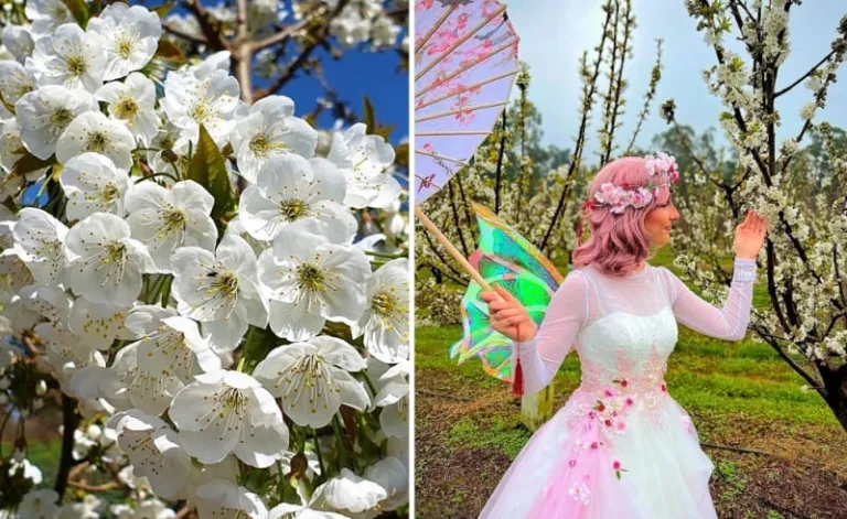 Affectionately referred to as the “Cherry Well,” Lanidale Cherry Orchard is primarily known for their cherry and apricot-picking experiences. However, don’t skip out on this spot to view the cherry blossoms in Australia! While the orchard is closed from fruit picking during cherry blossom season, you’ll be able to see the towering trees covered in dainty white petals. And since the orchard is not open yet, you can get some nice, unobstructed shots of the cherry blossoms!