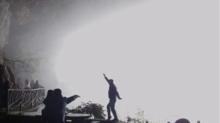What greeted me at the exit was an amazing view from a cliff opening of the mountain. Aptly named “Spirit View Hole”, the entire view was encompassed by misty clouds that obscured sight after a few feet. That did not dampen the tour group, however, as they began taking shadowed candid shots with the brightly lit backdrop!