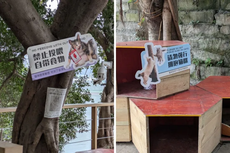 You can interact freely with the cats around the park. They were generally friendly when I visited, and it was a bit chilly so cats were more willing to come close for that extra body heat. Be careful not to force interactions or feed the cats external cat food, as numerous signs around the park will remind you.