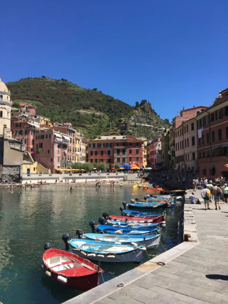 The town of Vernazza is the most bustling out of all. It should be about lunch time by the time you arrive. Walk down to the harbour where you will find plenty of seaside restaurants. Enjoy the view while sipping on a glass of wine.