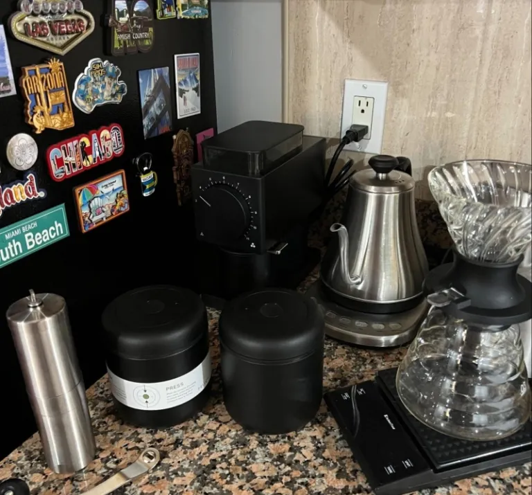 Prio’s coffee brewing set-up at home