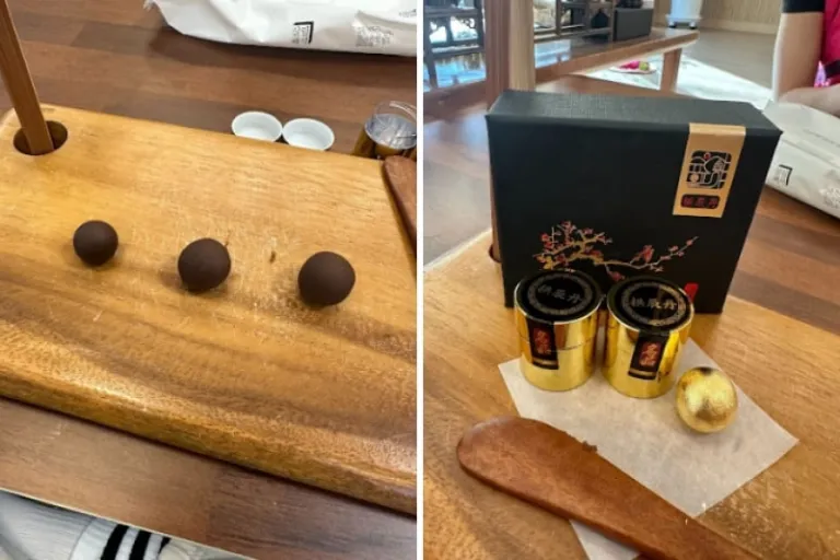 Continuing our herbal journey, we had the chance to practise what we’d just learned by making and trying gongjidan, a traditional energy-boosting pill. We kneaded the pills together and wrapped them in gold foil. While the taste was undeniably bitter, the health benefits and impressive one-year shelf life make it a prized gift. Plus, the elegant packaging adds an extra touch of charm!