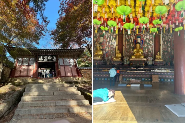 Nestled in Gaya Mountain, the UNESCO World Heritage Site and one of Korea’s three largest temples, Haeinsa Temple, was our last stop in Hapcheon. Visitors can donate rice, candles and other essentials but here’s the catch — you need to carry your offering up to the main Buddha yourself! Climb up 108 steps to reach the main Buddha, a symbolic journey reflecting the 108 earthly desires in Buddhist teachings.
