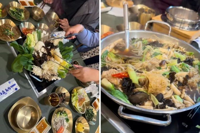 Upon landing, we hopped onto a bus that whisked us straight to Sancheong. We were greeted with a quintessential Korean welcome: a choice of delightful medicinal herb and mushroom or beef hotpot at the Medicinal Herb & Mushroom Restaurant in Donguibogam Village. The deerhip and antelope horn mushrooms, unique varieties that only grow in the local mountains, gave the dish a regional touch!
