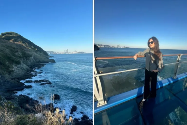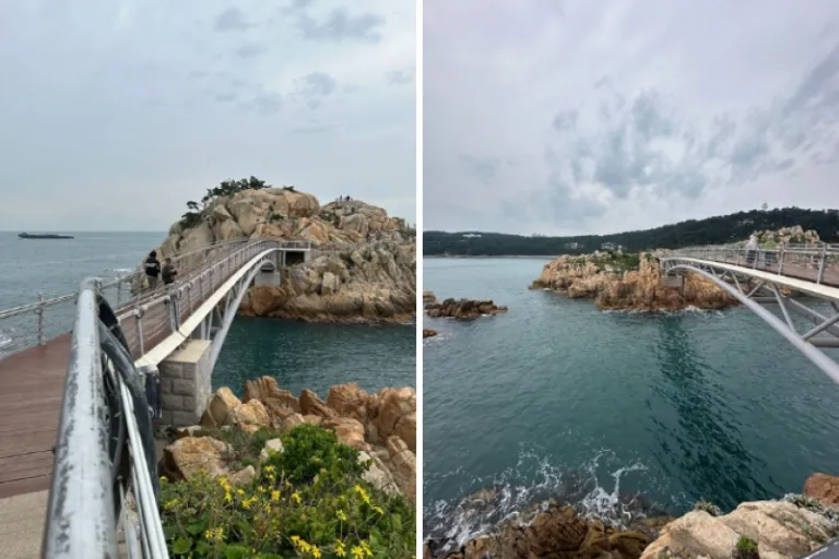 After the aesthetic and fun museum, we headed to Oryukdo Island Skywalk where we were given shoe covers to protect the glass walkway. This glass-bottomed walkway offered an exhilarating view straight down to the crashing waves below — definitely not for the faint-hearted! Best of all, entry is free, making it an unforgettable experience that doesn’t cost a dime (or won in this case).