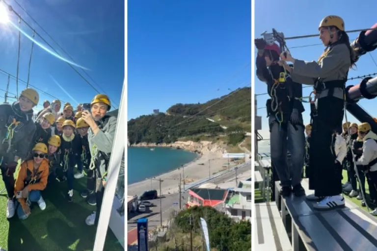 The next morning, after checking out, we set off for Busan Metropolitan City—a dynamic coastal gem famed for its picturesque beaches, rich cultural scene, and thrilling outdoor adventures. Our Busan escapade kicked off with an adrenaline-pumping zipline ride over the dramatic Taejongdae Cliffed Coast. The panoramic views from above were absolutely breathtaking, setting the tone for an unforgettable day!
