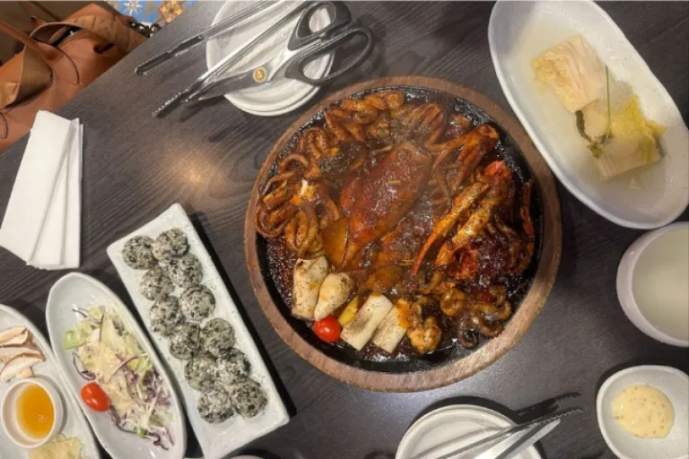 We ended our day with dinner at Sikdang 3 Sun where we had the chance to try haemul cheolpan gui — seafood teppanyaki, or saeng modeum gui — assorted grilled meat. Throughout our trip, the seafood consistently impressed us with its freshness, highlighting the region’s coastal richness. The seafood teppanyaki was no exception, perfectly grilled and seasoned, an absolute delight!
