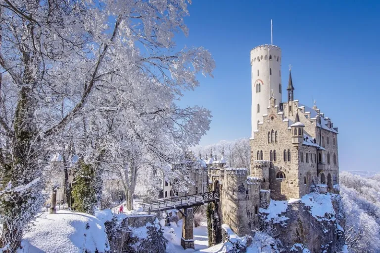 If Lichtenstein Castle looks like it was lifted from a storybook, that’s because it was. Count Wilhelm of Württemberg built this imperial residence out of admiration for the historical novel Lichtenstein, which takes place in a lofty castle like this one. It sits on an exposed cliff that overlooks the lush valley of Echaz. During winter, it looks almost otherworldly.