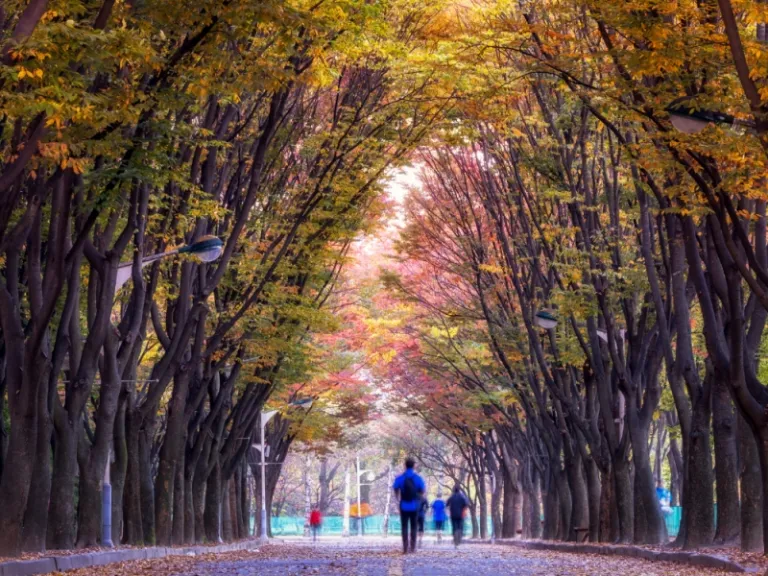 If your idea of the perfect South Korea autumn consists of grass fields, park trails, and sweeping vistas, then no place captures this beauty as well as Haneul Park. Come early before the crowd, and either ride a buggy or take a morning hike up to the top. Stroll through mazes of 90cm-tall muhly grass fields swaying in the gentle breeze, and make use of photo ops under clear skies.