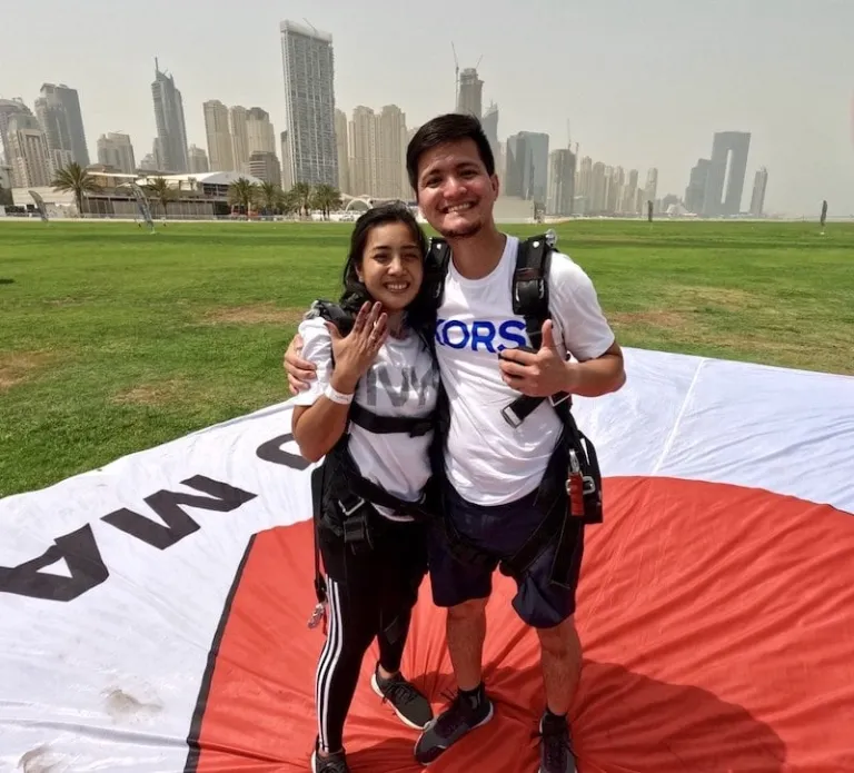 It was June 2022 when Herbie planned a (literally) sky-high sort of destination proposal to Reina, his girlfriend of three years then. Not only was it the highlight of their long overdue post-lockdown trip to Dubai, but it also happened alongside something that was on their bucket list: skydiving!