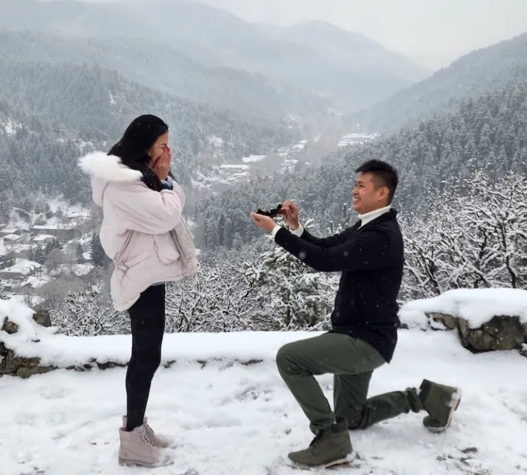 As fate (or luck) would have it — their tour guide offered another recommendation that saved the day! “On our way to Bakuriani, [our guide] saw in an Instagram story from a relative that it was snowing in their hometown. He immediately suggested that we go to Abastumani instead,” Grace explained. “It was also just an 80km drive away, so we agreed!” But of course, it wasn’t until Ryan finally popped the question that she finally found out why he was so adamant about going somewhere snowy.
