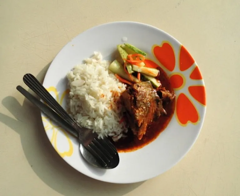 A good accompanying dish for Nasi Dagang is definitely Gulai Darat. This fish curry dish is made of tuna, salmon or mackerel and a Malay-style curry – from coconut milk mixed with traditional Malay spices such as lemongrass, galangal, chilli paste, and turmeric.