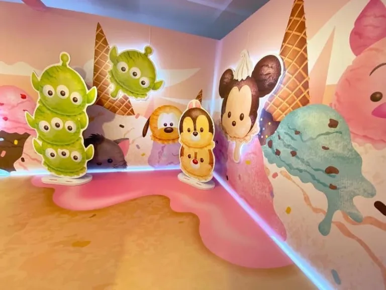 The Tsum Tsum pop-up store is basically designed with Disney characters in ice cream form from top to bottom. For instance, you’ll see a standee presenting the three aliens from Toy Story stacked on top of each other on an ice cream cone. There’s a similar stand for Mickey, Minnie, and Pluto too.