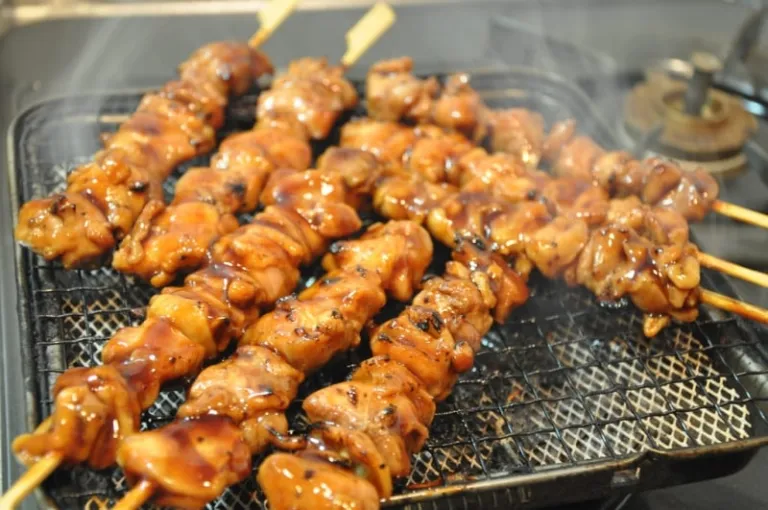 Yakitori is simply grilled chicken on a skewer. Bite-sized pieces of chicken are skewered on wooden or bamboo skewers and grilled over a charcoal grill, giving it that oh-so-lovely smoky aroma. Before serving, the yakitori is often basted with tare and occasionally seasoned with other ingredients such as wasabi or various peppers. If you’re feeling truly adventurous, you could also replace the conventional chicken meat with chicken liver, heart or intestines.