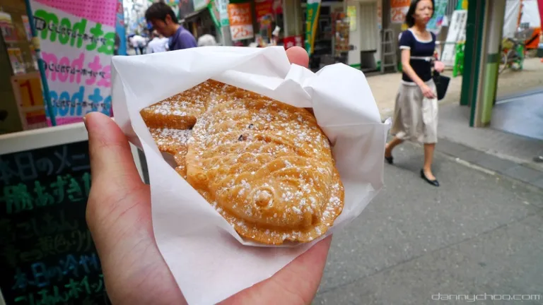 Having had so much deliciously savoury food stuffed into one’s mouth can be a little tiring. So I say it’s time to refresh our palette with a little dessert. Taiyaki is a popular dessert pastry that’s shaped like a sea bream. The dough is fluffy and fragrant and the crust is crispy with just the right amount of thickness. Traditionally, taiyakis are filled with red bean paste or sweet potato, but more modern variations include chocolate, custard and for the truly sinful, even meat and cheese!