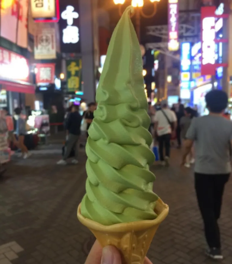 If you’re looking for yet more dessert to round off a night of eating, then I must insist you try the popular green tea soft-serve ice cream cone. Of course, other flavours are available, but come on, you’re in Osaka, Japan. The ice cream is amazing, creamy and the cone is flaky and light. What’s most impressive, however, is how tall the ice cream cone can get! I’ll leave that to your imagination.