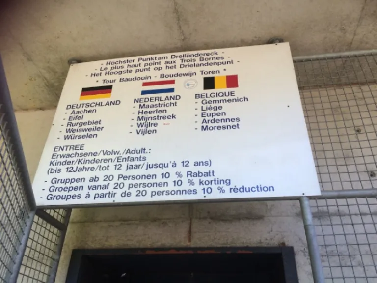 Near the tripoint, you can also climb a 50-metre high tower called Baudouin Tower; you can see a panoramic view of the three countries. The entrance fee is €3.50.