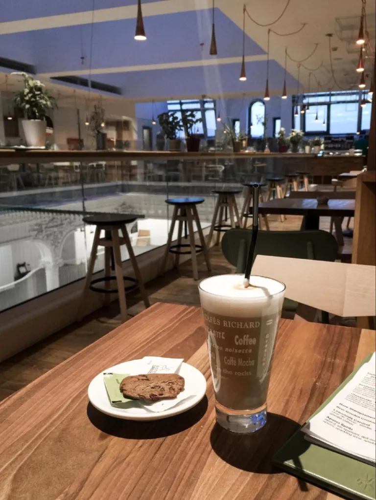 Sit down for a coffee or hot chocolate and indulge in a great variety of delicious cakes and pastries. Whatever it is, this inspiring space is a true masterpiece for any kind of traveller.