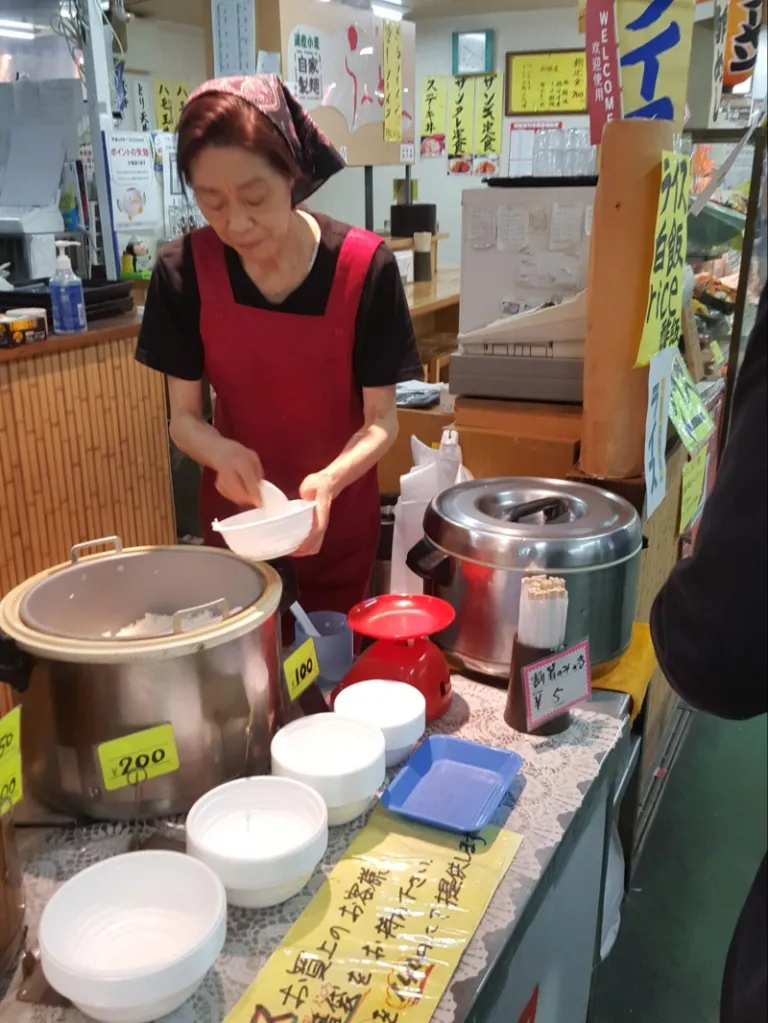 At the Kushiro Washo Market, you will find a buffet experience like no other. You start off at a stall to get your staple dish. In this case, that could be a bowl of rice. You can choose among the different amounts of rice you’d want.