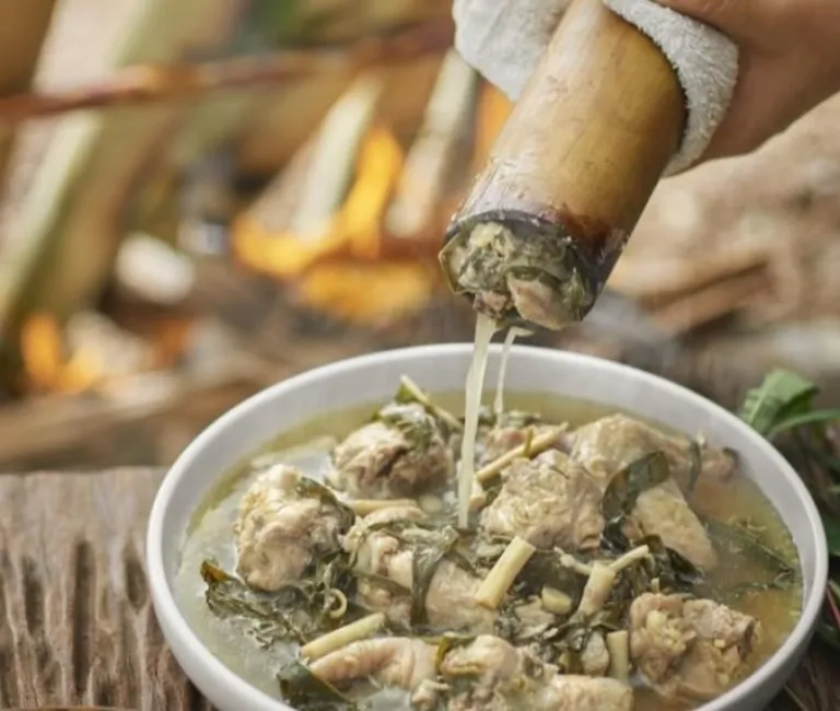 Ayam Pansuh or Manuk Pansuh is a chicken dish exclusively found in Sarawak. This is a unique dish made by cooking chicken mixed with garlic, ginger, lemongrass, shallots, Kantan flower, and chillis in a hollow bamboo tube, seasoned with salt, seasoning powder and tapioca leaves.